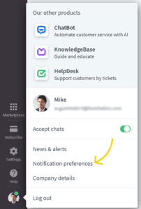 W przypadku kiedy chcesz zmienić ustawienia powiadomień i dostosować je według własnych upodobań, wybierz ikonę profilu, a następnie preferencje powiadomień (Notification preferences).